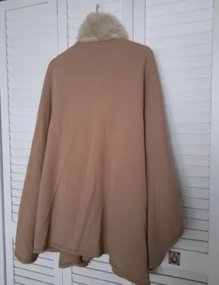 Capa beige con cuello de pelo. Talla Única
