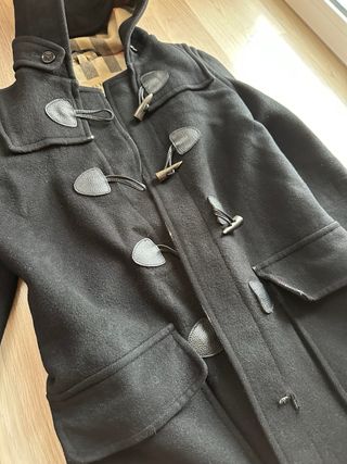 DETALLES: ✅ Alamares metálicos con el logo grabado. ✅ Capucha fija y lana de alta calidad. ✅ Talla S. (Pedir medidas si es necesario) ESTADO DE LA PRENDA (Ver fotos 📸): El precio está muy rebajado porque el abrigo ha tenido bastante uso y presenta desperfectos estéticos que he detallado en las imágenes: ⚠️ Desgaste en bordes: Como se ve en las fotos de cerca, los remates de los bolsillos y de la solapa principal tienen el tejido desgastado. ⚠️ Pilling: Presenta bolitas y desgaste general en la lana por el roce. ⚠️ Uso: No es una prenda nueva. Ideal para uso diario o para alguien que sepa restaurar los bordes de lana.