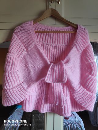 HE REBAJADO la rebeca NUEVA de LANA tricotada A MANO con AGUJAS TEJER es L. Y sirve a más color rosa Claro. La LANA es muy buena. Rebajada 12. Diciembre.2025 ADMITO OFERTAS