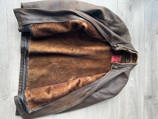 Cazadora de cuero talla 9 años " 134cm" el cuello es de lana se puede quitar y poner.