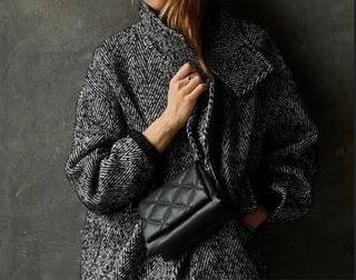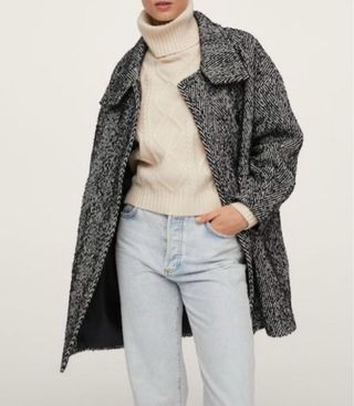 Elegante abrigo de lana con un clásico estampado de espiga. Perfecto para añadir un toque sofisticado a tu vestuario. - Diseño de doble botonadura. - Cuello solapa. - Bolsillos frontales. - Largo hasta la rodilla.