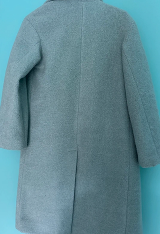 Abrigo moderno de corte oversize. Su diseño es versátil y actual. - Tejido de lana. Usado un par de veces, en general en excelente estado Muy calientito, color verde agua - Cuello solapa. - Manga larga.