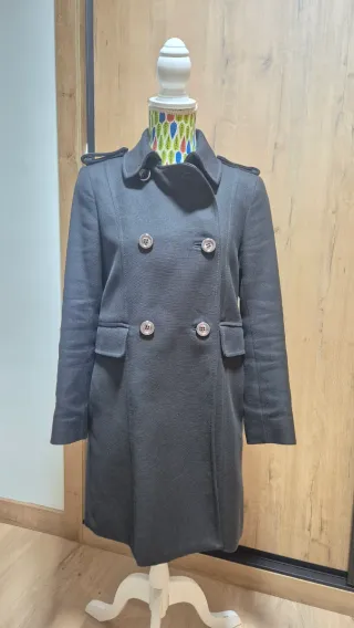 Chaqueta de estilo militar de Zara. Diseño de doble botonadura con botones plateados. - Cuello solapa. - Bolsillos frontales. - Puños con detalle de botón. Nueva 50% lana