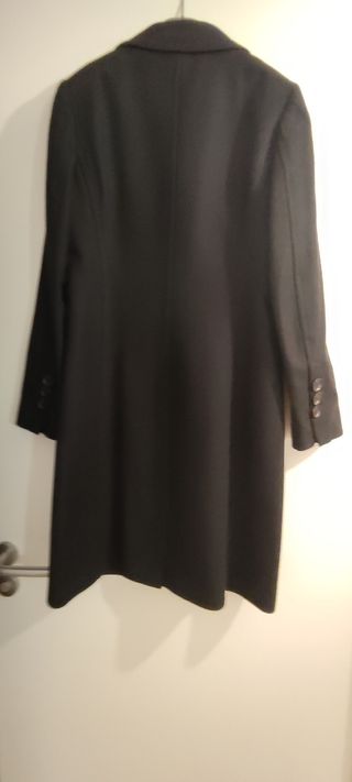 Abrigo negro recto y entallado. Talla 42 italiana que equivale a una 38 española. Excelente calidad y diseño. Es de mezcla von lana y cashmere.