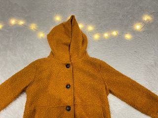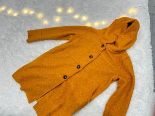 Abrigo Italiano de lana con capucha en color amarillo mostaza. Talla: M mujer Hombros: 44 cm Pecho: 55 cm Largo: 85 cm Una pasada de bonito y de calentito gracias a su lana! Se cierra con botones y tiene bolsillos. Da un toque alegre a cualquier outfit. Es precioso con su capucha y su color. Todas las prendas se envían lavadas 🧼🫧. Hago LOTES y PACKS, pregúntame! ❗️ Echa un vistazo a mi armario, ropa muy barata y súper chula, y más cositas!!! 🤩😎👀✨💕