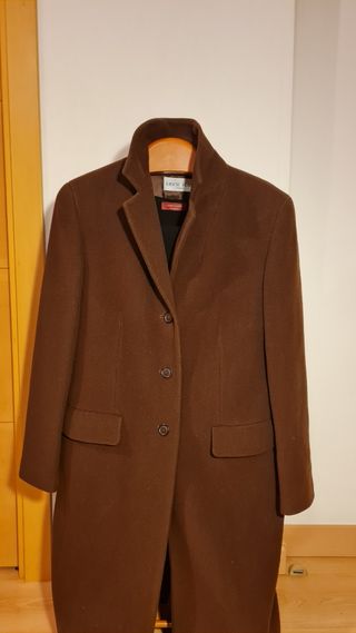 Puesto muy pocas veces. En la foto por detrás y las que está con el metro se aprecia mejor el color Cierre de cremallera y dos botones, arriba y abajo Bolsillos por fuera a ambos lados y un bolsillo por dentro con cierre de cremallera Exterior: 60% lana, 30% poliéster, 5% poliamida, 5% otras fibras Interior: 100 % poliéster Hago envíos combinados, puedes mirar mi perfil por si te interesa algo más y pongo todo en el mismo paquete en un único envío