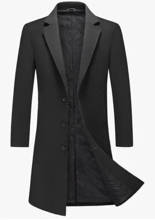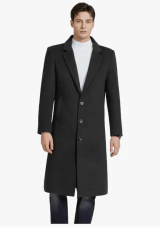 MODFUL Abrigo largo de lana para hombre con cuello muesca, abrigo cálido de invierno, informal, corte ajustado - Material: Lana - Color: Negro
