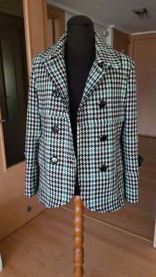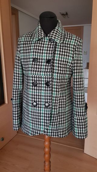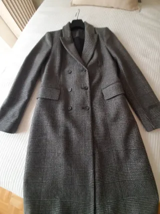Elegante abrigo con estampado de cuadros Príncipe de Gales. - Diseño de doble botonadura. - Bolsillos frontales. - Cuello solapa clásico. Entallado, no lleva etiqueta porque se la corté pero en los botones lleva la inscripcion de Zara. Fue una serie especial y está muy bien confeccionado. Es lana