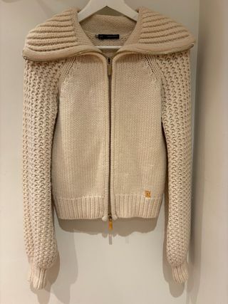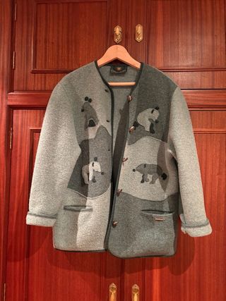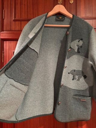 Chaqueta muy suave y cálida. Con botones dorados metálicos recién puestos nuevos. Medidas anchura 48 centímetros, largura 47 centímetros, longitud mangas 69 centímetros.