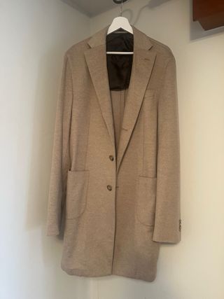 Abrigo clásico de corte recto, ideal para un estilo elegante. - Talla 50. - Largo 118, sisas 60 - Lana y cashmere. - Mangas ranglan - Tiene cinturón - Diseño atemporal. - Cuello solapa. - Bolsillos frontales.
