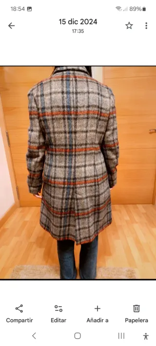 - Abrigo de lana. - Con bolsillos laterales. - Bolsillo interior. - Cierre con botones. - Con botones de repuesto, en la etiqueta. - Con forro. - Tiras, con botones, en las mangas. - Tira con corchete en el cuello. MEDIDAS: > hombro a hombro: 52 > axila a axila: 64 > largo: 92 > anchura (abajo) 66 * Está impecable, prácticamente nuevo.