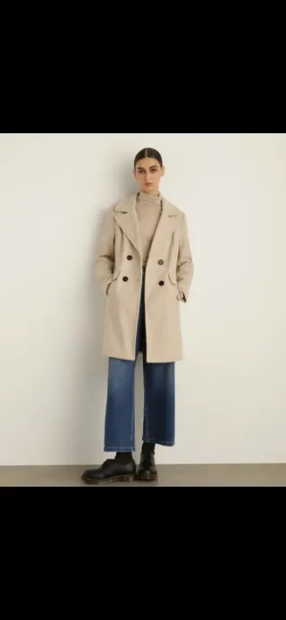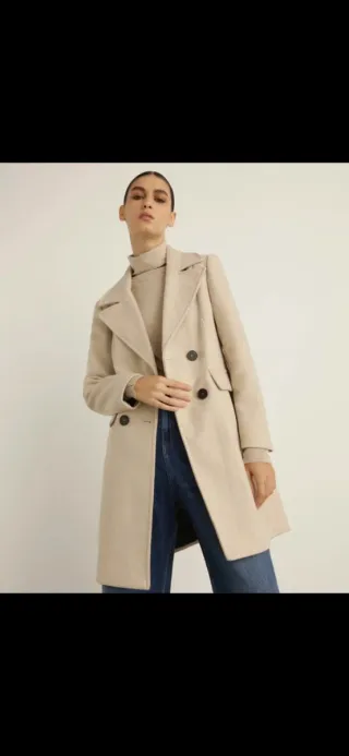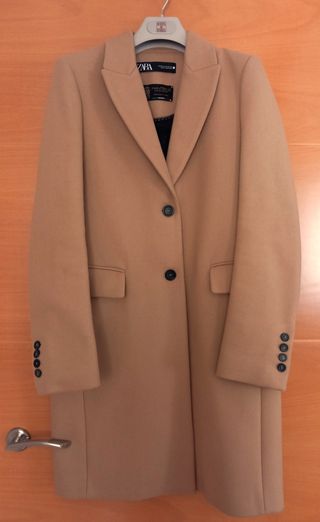 Elegante abrigo de lana de Zara en tono beige. Estiliza mucho - Diseño clásico con solapa. - Cierre de un botón. - Bolsillos laterales.