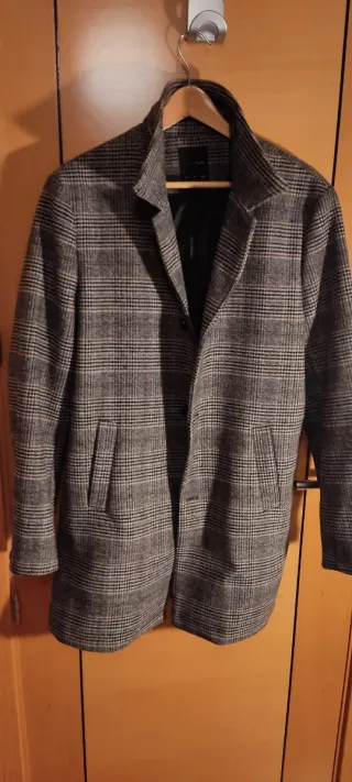 Abrigo lana cuadros gris Talla L
