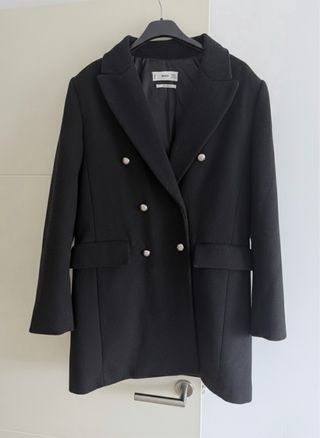 Abrigo elegante de Mango con un toque de lana. Ideal para mantenerte abrigado con estilo. - Diseño de doble botonadura. - Bolsillos frontales. - Cuello solapa clásico. Tiene signos de uso en el cuello y en los bolsillos Composición: 53% poliester 40% lana 3% acrílico 2% poliamida 2 % algodon
