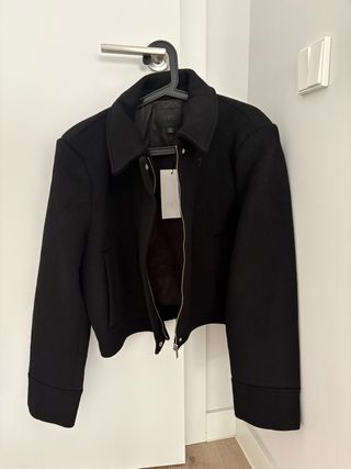 Cazadora de Zara con un diseño moderno y elegante. Talla M - Confeccionada con lana. - Color negro. - Sin estrenar, con etiqueta