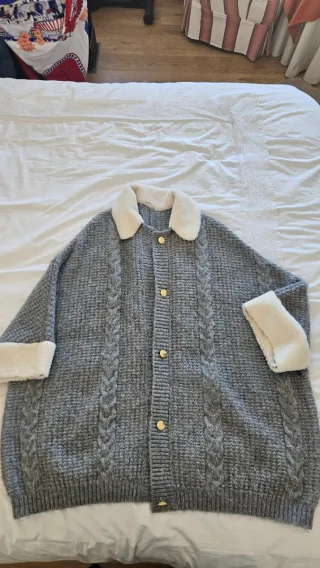 Abrigo de punto en color beige. Talla L. Composición: 60% acrílico, 40% lana. Usado, buen estado. #abrigodepunto