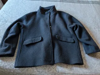 Chaqueta de lana con cuello alto. - Cierre de botones. - Dos bolsillos delanteros. - Medidas: de hombro a hombro 55 cm, de axila a axila 60 cm y largo 74 cm