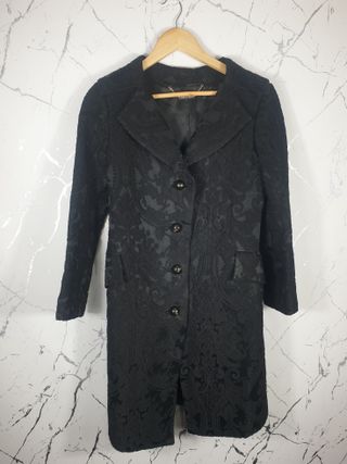 -🧥 Abrigo o chaqueta Pedro del Hierro negra con detalles de encaje floral tipo jacquard. Talla 38 o talla M de mujer 📐92 cm largo, 44 cm axilas, 54 cm hombro-puño. -🔎 Cierre frontal con botones, dos bolsillos decorativos. Forro interior de viscosa. Esta elegante chaqueta PdH es perfecta para un look clásico y formal. - 🧵 70% lana, 26% acetato, 4% poliamida. Forro de viscosa. giacca abito donna nero black jacquard lace jacket coat pdh