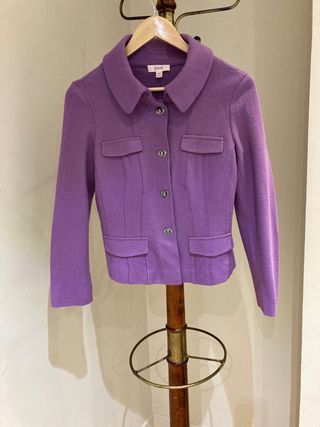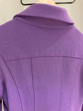 Chaquetón Talla 40, en lana y viscosa. Abotonadura interna. Es color berenjena. En las fotos sale más claro, el color es más exacto en la foto donde pone composición del artículo. Sólo usado una vez en un evento.