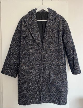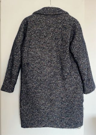 Abrigo largo de zara en color crudo con lana de Manteco. Pone talla M pero yo ahora uso una L ( 40) y me está bastante grande. Las medidas de sisa a sisa son entre 59 y 61 cm si lo estiro y largo 118cm