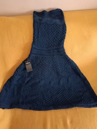 Jersey de punto con cuello alto. 100% lana. - Azul marino. - Tejido de canalé. - Diseño liso. - Muy abrigado. En perfectas condiciones, poco usado.