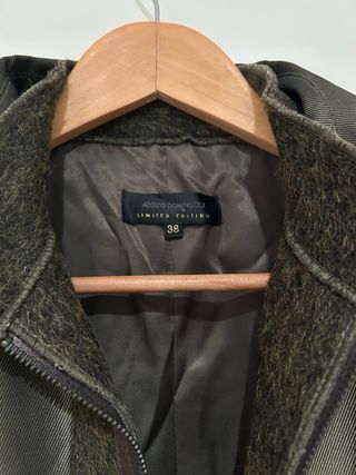 Chaqueta de lana MANTECO de la colección ZARA Está como nueva; apenas la usé porque queda un poco ajustada al combinarla con un suéter. ✨ Talla: M ✨ Súper abrigada y con estilo ✨ Casi sin usar, en excelente estado Recogida en La Malvarrosa. - Diseño de doble botonadura con botones dorados. - Cuello alto con detalle. - Bolsillos frontales con solapa y botón. - Corte entallado que favorece la figura.