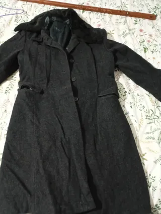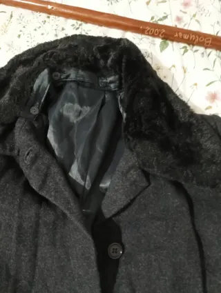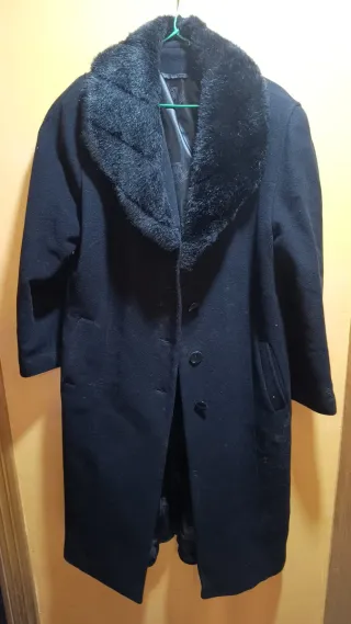 Elegante abrigo de lana con un suave cuello de pelo. - Material principal: Lana. - Detalle: Cuello de pelo sintético. - Cierre: Botones frontales.