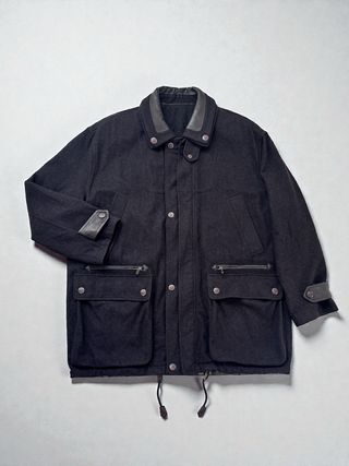 Chaqueta vintage con un diseño único que combina lana y detalles de peletería. - Tejido principal de lana. - Paneles de peletería en hombros y detalles. - Cuello alto acanalado. - Puños y bajo acanalados. Limpieza realizada de tintorería