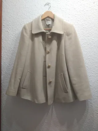 Abrigo mujer beige de la marca Santa Eulalia Barcelona, 100%lana. Talla 52 Medidas: hombros 48cm, ancho 62cm y largo 80 cm. No se hacen envíos
