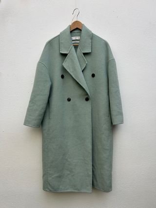 Elegante abrigo largo de la colección ZW de Zara. - Confeccionado en lana 100%. - Diseño de doble botonadura. - Bolsillos frontales. - Puños con botones.