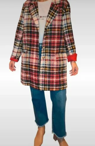 Oportunidad de Lujo: Espectacular abrigo de la firma española Coosy. Una pieza icónica que combina elegancia clásica con un toque moderno. Su tejido tipo lanita es abrigado, suave y con una caída impecable. ✅ Estado: Reestreno. Puesto solo en una ocasión. Está absolutamente nuevo, sin ninguna marca de uso. ✅ PVP Original: 240€ (Ahorra más de la mitad en una prenda de calidad premium). Estampado: Cuadro clásico Interior: Forro premium en color rojo vibrante (detalle de alta costura al abrirlo o remangar puños). Botones: Detalles de diseño dorados muy cuidados. Corte: Estructurado, elegante y muy favorecedor. TALLA M
