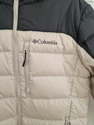 Abrigo Columbia Plumas Beige y Negro