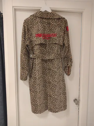 Abrigo con estampado animal print de la marca Animosa. Un diseño llamativo y moderno. - Estampado de leopardo. - Cinturón para ajustar. - Cuello solapa.