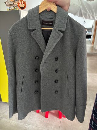 Elegante abrigo de paño de la marca Michael Kors. - Diseño de doble botonadura. - Cuello solapa clásico. - Bolsillos frontales. - Puños con detalle de botones.