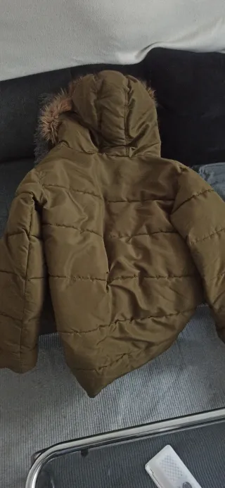 Abrigo de invierno con capucha y detalles de pelo sintético. - Cierre de cremallera y botones. - Bolsillos frontales con solapa. - Puños acanalados Se usó un par de veces La marca no deja poner la del, está puesta en una etiqueta de una foto, la mar auténtica