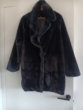 Abrigo de pelo sintético en color negro. Super cálido y favorecedor. Es una talla S amplia o una M. Cierre con boton