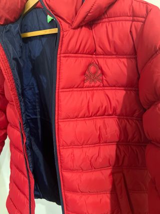 Abrigo acolchado para niño de la marca Levi's. en perfecto estado casi sin uso - Diseño en color rojo con detalles de rayas en azul marino, blanco y gris. - Capucha integrada. - Cierre de cremallera frontal.