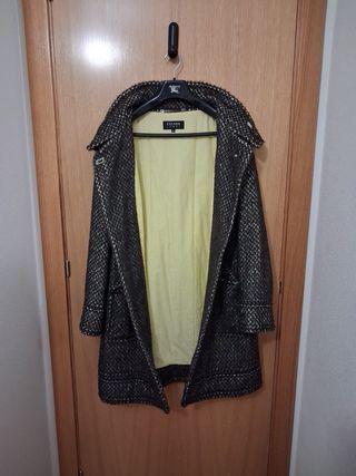 Abrigo de la marca Zara en color beige con detalles en negro. - Cuello alto. - Cierre de botones. - Bolsillos laterales.