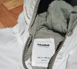 Chaqueta ligera de la marca Pull & Bear. - Diseño con capucha. - Cierre de cremallera frontal. - Dos bolsillos delanteros con solapa y botón. - Puños y bajo elásticos.