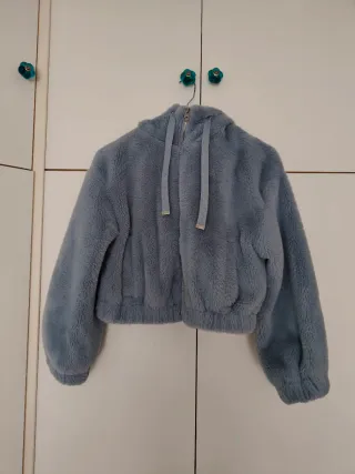 Vendo abrigo corto de pelo (tipo borreguito), suave color azul claro, marca Bershka. Muy calentito y cómodo, ideal para otoño e invierno. Detalles: Talla S Capucha con cordones Cierre con cremallera Puños y bajos elásticos Tejido muy suave y agradable al tacto Estado: Muy bueno, apenas usado. Sin manchas ni desperfectos. Entrega: En mano o envío por Wallapop. Cualquier duda, ¡pregúntame sin compromiso!