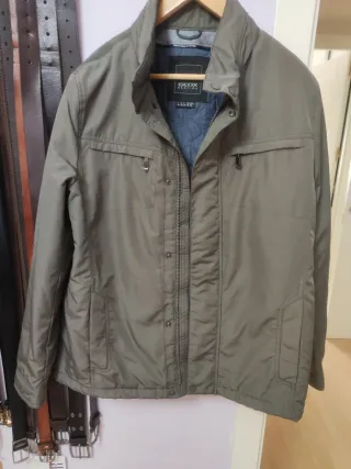 Parka de la marca Geox para hombre. - Color verde oliva. - Talla L (equivalente a 42-44 / 52-54). - Cierre de cremallera y botones. - Bolsillos frontales con cremallera y solapa. - Cuello alto.