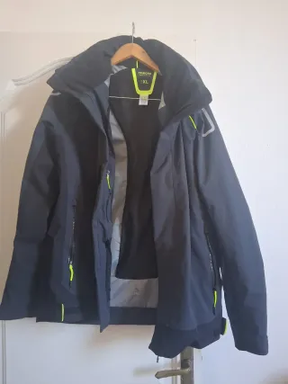 Chaqueta impermeable de la marca Tribord, ideal para actividades al aire libre. - Color azul. - Talla XL. - Diseño con capucha y múltiples bolsillos.