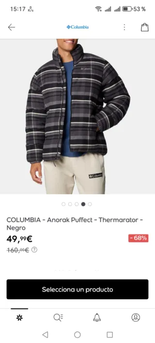 Chaquetón Columbia Anorak Puffect Thermarator en color negro. Diseño a cuadros. - Cierre de cremallera. - Cuello alto. - Bolsillos laterales. Marca una talla L pero es como una XL