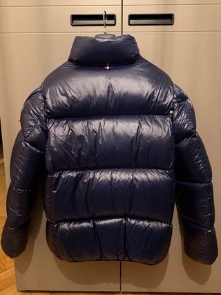 Anorak plumífero de la marca El Ganso en color azul marino, con forro interior en rojo. - Relleno de plumas de ganso y pato - Repelente a la lluvia - Diseño acolchado - Cremallera frontal con detalles tricolor - Cuello alto - Muy cálido, cómodo y transpirable. La prenda nunca ha sido utilizada por lo que esta para estrenar (sin etiquetas). Talla M.