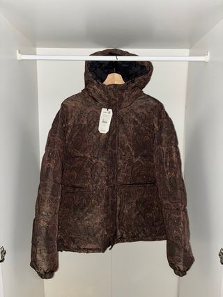 Abrigo acolchado de la marca Zara. - Diseño moderno y funcional. - Cierre de cremallera y botones. - Bolsillos con cremallera.
