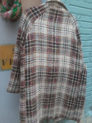 Abrigo de lana de tejido apretado. Abriga bien y es muy elegante. Vintage. Estilo único hoy. Con cintura bonita y marcada y falda acampanada. Tiene todos los botones. 2 bolsillos anchos. Con adornos y detalles que no se ven en la ropa de hoy. Es talla XS. Las dimensiones son: 46cm hombros, 36cm cintura, 115cm long, 54cm manga. Es tan bonito y me gusta mucho pero ya no lo necesito. Está un poco arrugado en las fotos por estar almacenado pero se ve en la foto puesta que se cae bonito. La parte de lana del abrigo propio está en buen estado. Solo el forro está un poco roto del abrigo en una parte se ve en las fotos. Hay que coserlo de nuevo.