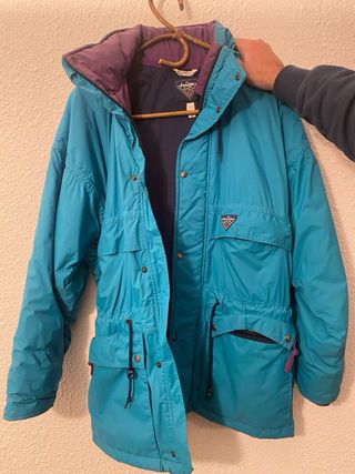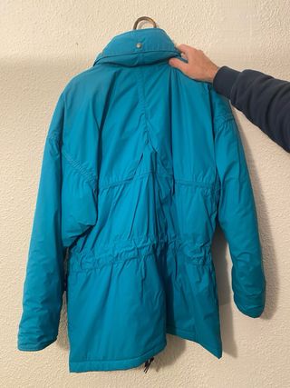Abrigo de la marca Quechua en color azul. -muy cálido .soporta hasta -10•c - Capucha ajustable. - Bolsillos frontales con solapa. - Cierre de cremallera. - Puños ajustables con botones.