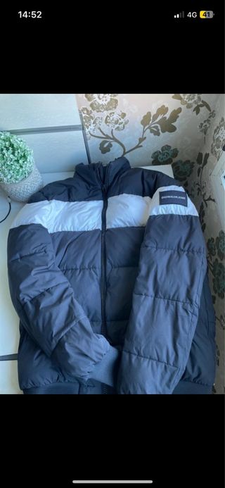 Chaqueta entallada acolchada con detalles en contraste. Interior de forro polar. En la etiqueta pone talla L , pero es como una M. - Diseño acolchado. - Cuello alto. - Cierre de botones. - Bolsillos con solapa.
