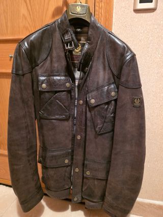 Chaqueta de cuero de la marca Belstaff en color marrón. Un clásico con un diseño atemporal. - Cierre de cremallera y botones a presión. - Múltiples bolsillos frontales con solapa. - Cuello con correa ajustable. - Detalle de logo en la manga.