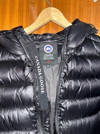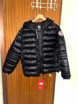Abrigo acolchado de la marca Canada Goose, sin estrenar. - Diseño con capucha. - Cierre de cremallera frontal. - Bolsillos laterales. - Parche icónico de la marca en la manga.